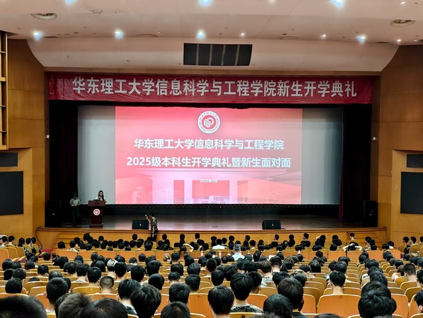 9月11日晚,澳门永利yl67762025级本科新生开学典礼暨新生面对面活动在奉贤校区大学生活动中心剧场举行。澳门永利yl6776党委书记侍洪波、院长钟伟民、党委副书记郭卫斌、党委副书记许浩、副院长谭帅、自动化系主任宋冰、计算机系主任李建华、电信系主任姜庆超、教师代表及全体 2025 级本科生参加活动,新生辅导员潘恬主持本次活动。